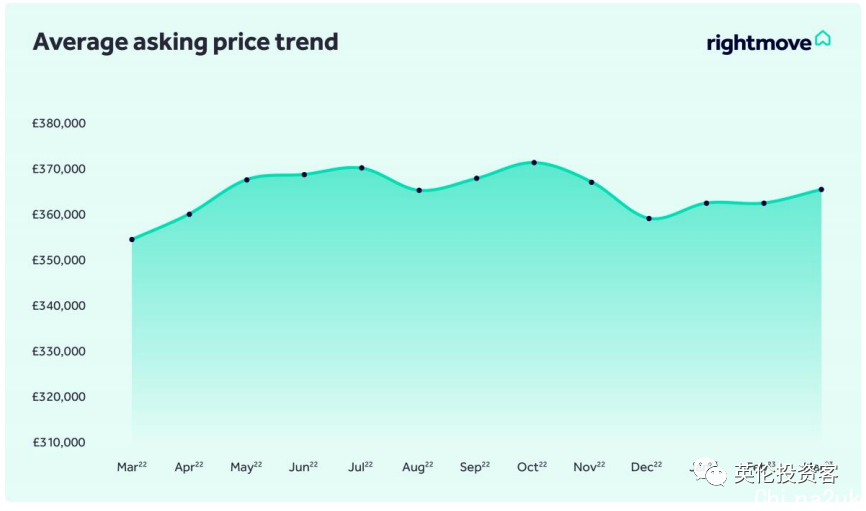 这边咱们也附上(2022年3月-2023年3月)英国房产挂牌价走势: