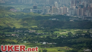 香港新界東北新發展区面对深圳的高楼,目前是一大片无人居住地区。