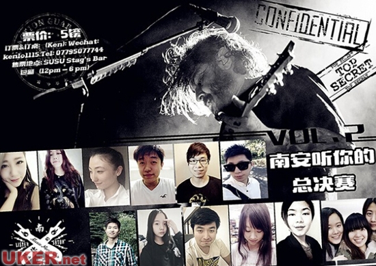 中英网12月9日讯 南安普顿大学发布岁末狂欢活动通知,一年一度的大型歌唱比赛开始了!2014最后的狂欢,就在12月10号“南安听你的”2014年末派对,给奋斗三个月的你们一个释放激情的机会。