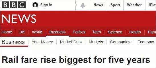 BBC News & 卫报:英国将遭遇5年以来最大幅度的火车票涨价!