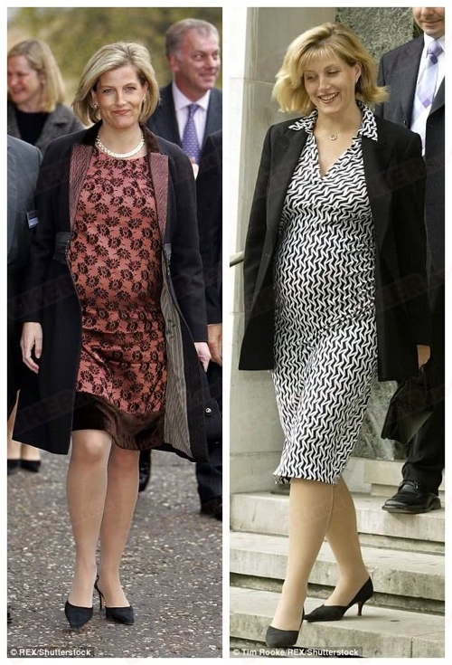 依据是什么?他们翻出了当初爱德华王子的王妃苏菲两次怀孕的照片:左边腹部满当当时生下的是女儿路易丝·温莎郡主,右边圆球形状的是怀着儿子詹姆斯。