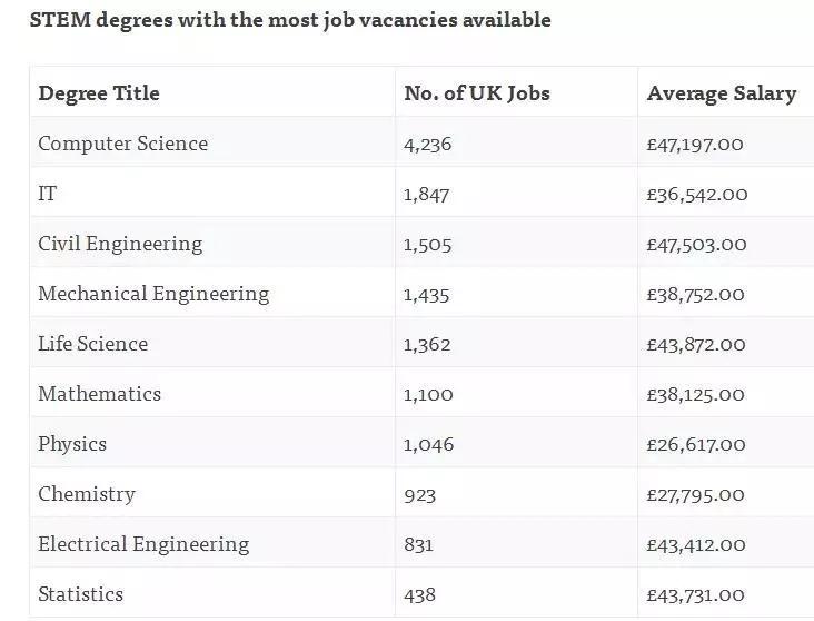 现在大部分英国大学都收取最高标准的学费,每年高达9000英镑,所以大部分学生都想毕业后能找份高薪的工作,也好让那昂贵的学费有所回报。高薪的工程学和市场需求量较大的技术学似乎是不错的选择,但数学和科学也同样不可忽视。