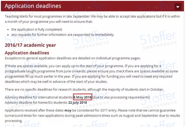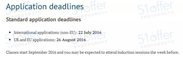 通常截止时间为2016年7月1日,但由于中国学生申请过多,将有可能提前截止。