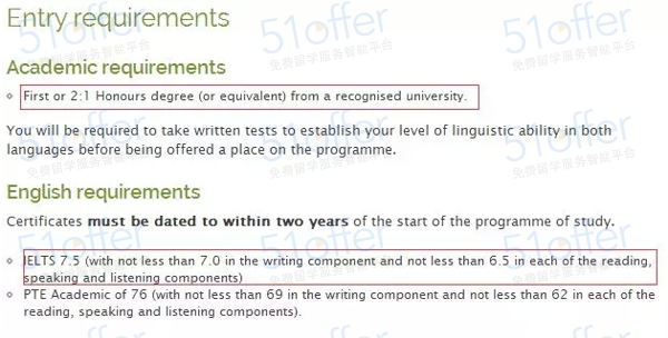 请注意:雅思要求7.5(单项说不能少于7.0,单项听读写不能少于6.5)