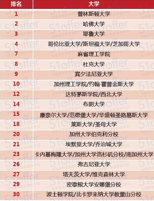 此外,《白皮书》还提供了一份美国TOP30大学的榜单,为留美提供系统的参考。