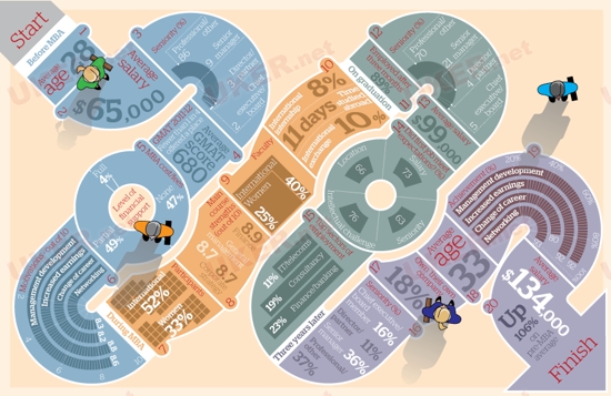 这张图其实是MBA课程价值进度表!短短几年,经过MBA的学习深造,薪资的神速提高是显而易见的。
