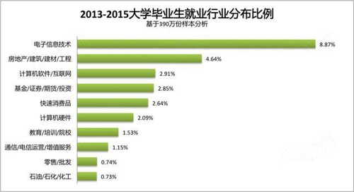 这些专业毕业生的主要就业行业,包括互联网、电商、咨询、金融、高新制造业等正处在大发展期,高薪职位在招聘季亦层出不穷,且彼此间起薪差距并不大。