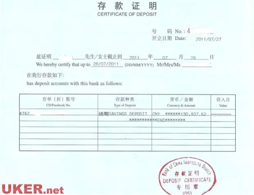 存款证明则是银行向签证中心证明这笔钱在申请期间已经替你冻结了的证据。